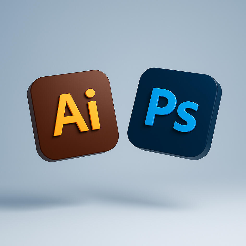 Uso o Illustrator para criar os desenhos da logo em alta qualidade, que podem ser usados em qualquer tamanho sem perder a nitidez.
